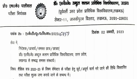 AKTU: विषम सेमेस्टर के परीक्षा के छूटे व अपूर्ण फार्म भरे जाने की तिथि बढ़ी, देखें क्या जानकारी दी गई है परीक्षा शुल्क को लेकर