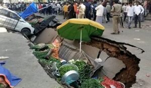 Share Newsतेलांगना। सोशल मीडिया पर एक वीडियो तेजी से वायरल हो रहा है, जिसमें दिखाई दे रहा है कि पूरी … Continue reading Video: सड़क धंसने से मचा बाजार में हड़कंप, गड्ढे में समा गया पूरा सब्जी बाजार, ठेलियां और तमाम कारें, वायरल हुआ वीडियो, कांग्रेस पर फोड़ा ठीकरा