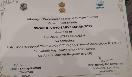 बता दें कि विगत 5 वर्षो में महापौर संयुक्ता भाटिया द्वारा किये गए कार्यों और लगाई गई एयर क़्वालिटी मशीनों की वजह से देश भर में लखनऊ को नंबर 1 का दर्जा दिया गया है। भारत सरकार द्वारा देशभर में कराए गए “स्वच्छ वायु सर्वेक्षण 2022” की ओवरआल रैंकिंग में लखनऊ शहर ने देशभर के प्रथम स्थान प्राप्त करते बड़े बड़े शहरों को पीछे छोड़ दिया। लखनऊ ने नेशनल क्लीन एयर सिटी कैटेगरी में बड़े आबादी वाले शहरों सहित ओवरऑल देश भर में सर्वोत्तम रैंकिंग प्राप्त करते हुए नं०1 स्थान बनाया।